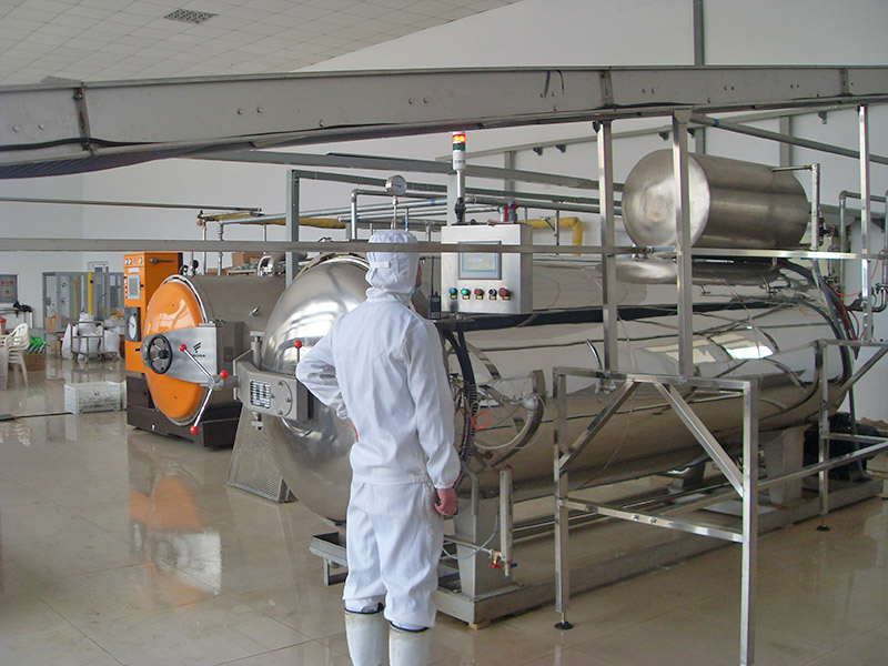 產品概述1)高溫短時間滅菌。采用雙罐熱水循環進行殺菌,事先將殺菌罐內的水加熱到滅菌所要求的溫度,從而縮短了滅菌時間,提高了工作效率。2)節約能源,提高產量。在殺菌過程中使用的工作介質可循環使用,節省了